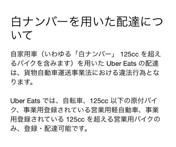 質問です。自分Ubereats配達員を250ccのバイクでやる為 - Yahoo!知恵袋